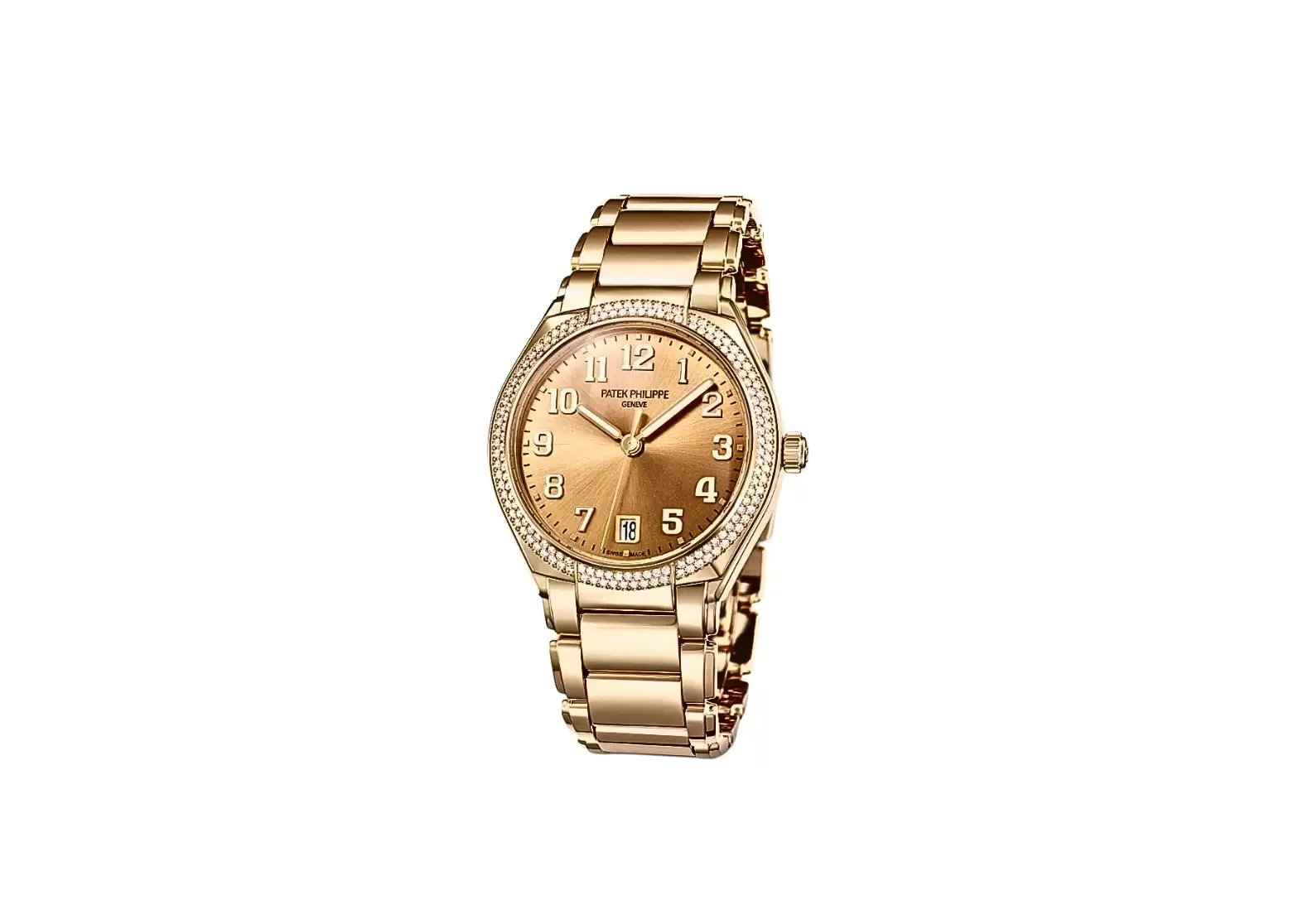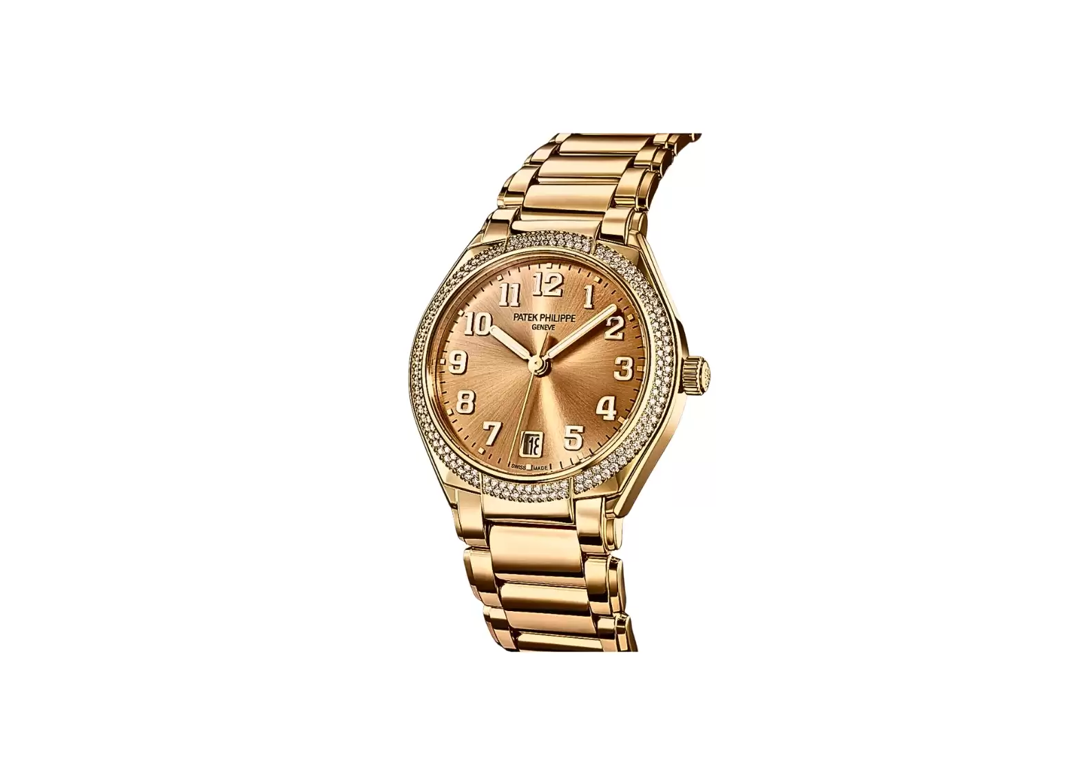 Adding a touch of glamour, the bezel of this Patek Philippe watch is adorned with 160 diamonds, totaling approximately 0.77 carats. This gemsetting elevates the watch to new heights of luxury, making it a true statement piece.