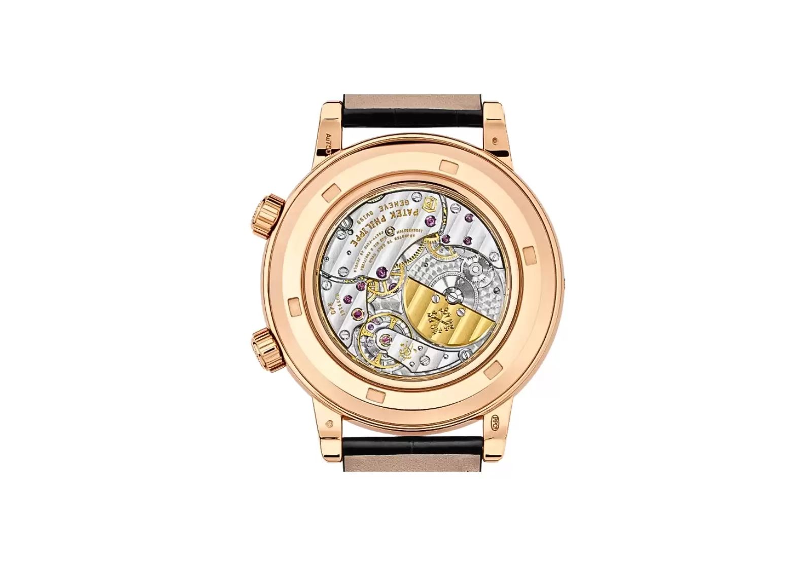 Encased in luxurious rose gold, this watch exudes elegance and refinement. The sapphire crystal case back not only showcases the intricate movement of the watch but also enhances its water resistance up to 30 meters. With a case diameter of 44mm and a height of 11.33mm, it strikes the perfect balance between size and comfort.