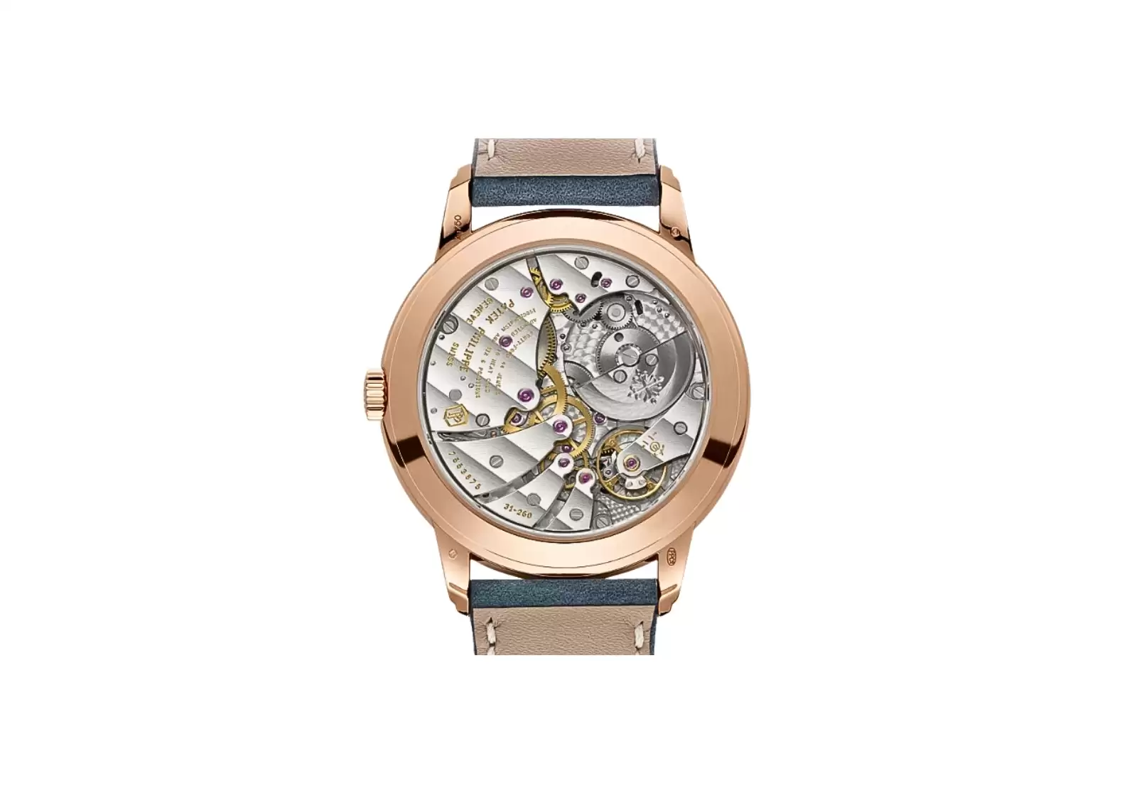 The exquisite rose gold case, meticulously polished to perfection, stands out with its curved two-tier lugs, adding a touch of sophistication. Patek Philippe's dedication to elegance is evident in the innovative design of this timepiece. Instead of traditional local time correction pushers, the brand has incorporated a patented crown-operated correction system, ensuring seamless functionality without compromising on style.