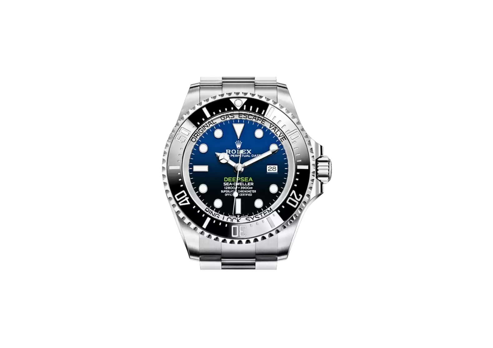 The polished and brushed 904L Oystersteel stainless steel case and bracelet exude a timeless charm. The 5.5mm thick domed scratch-resistant sapphire crystal protects the dial, ensuring durability. With a remarkable water resistance of 3,900 meters or 12,800 feet, this watch is perfect for diving enthusiasts.