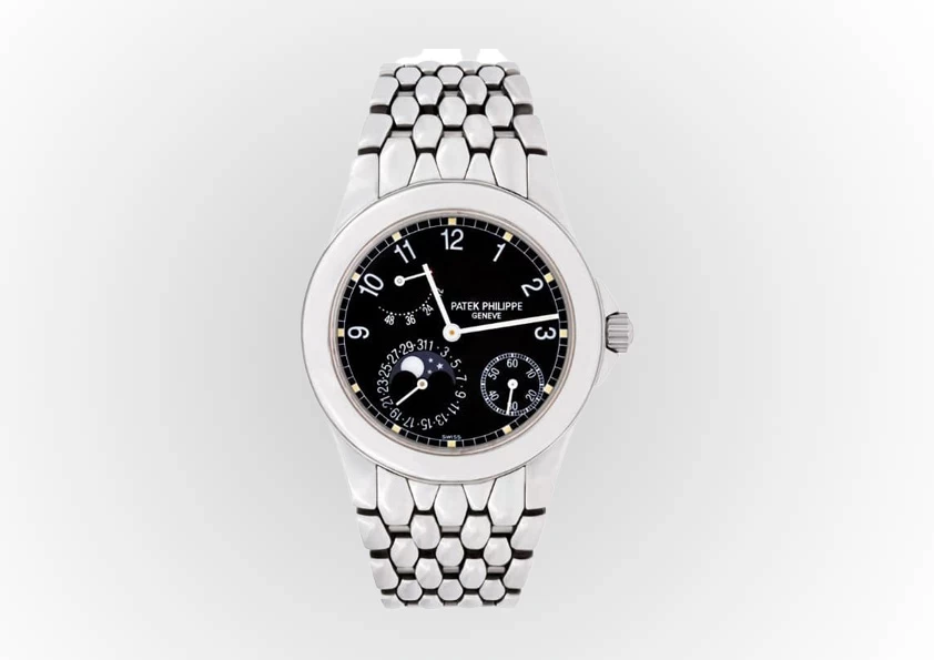 DescriptionPatek Philippe Neptune 5085 is a vintage watch with a 37mm black dial, power reserve indicator, and a moonphase complication. It is unique enough to stand out in the world of contemporary watches and is powered by the Caliber 240 movement, with up to 48 hours' worth of power reserve. |